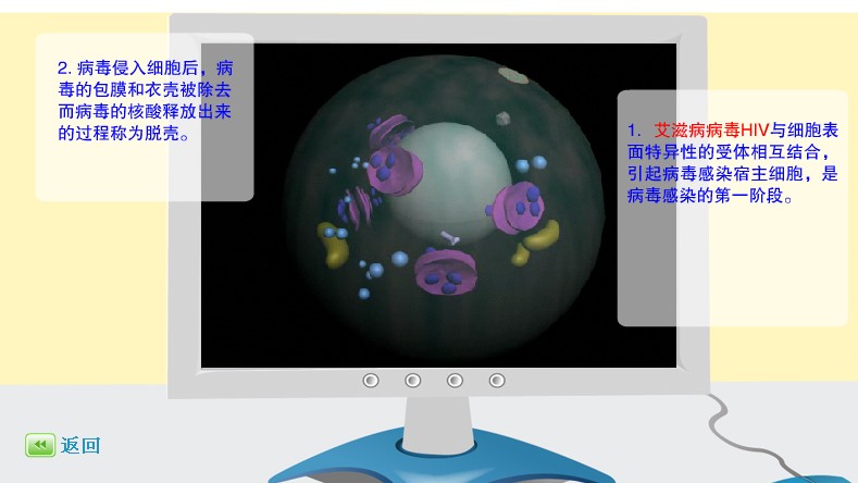 1艾滋病毒于正常細胞表面特異的受體相互結合,引起病毒感染寄主細胞,是病毒感染的第一階段