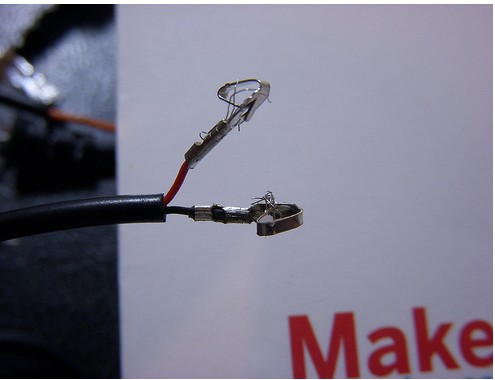 其實(shí)這個(gè)快門線裡只是把USB裡四條線的紅線和黑線接出來而已。當(dāng)按鈕按下,兩條導(dǎo)線連通,就可以對(duì)顯微鏡相機(jī)送出拍照的訊號(hào)。所以我要做的就是用電子零件控制導(dǎo)線何時(shí)連通。