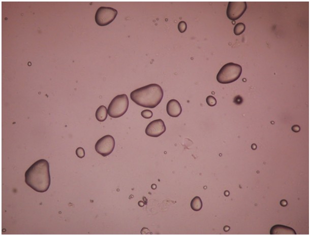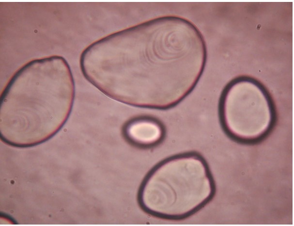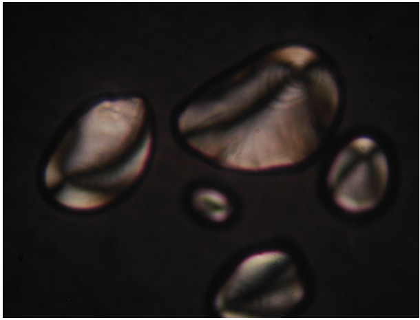 至于觀察的材料,就先用淀粉吧!檢驗淀粉我們都知道可以用碘液染色來確定,但使用偏光顯微鏡,不用染色就可以確定是不是淀粉了。