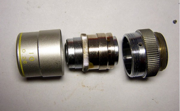 物鏡的部份,倍率越高物鏡就越長,當然結構也相對復雜。還好物鏡的螺紋有標準規格,所以A家的物鏡和B家的物鏡其實可以互相替換。